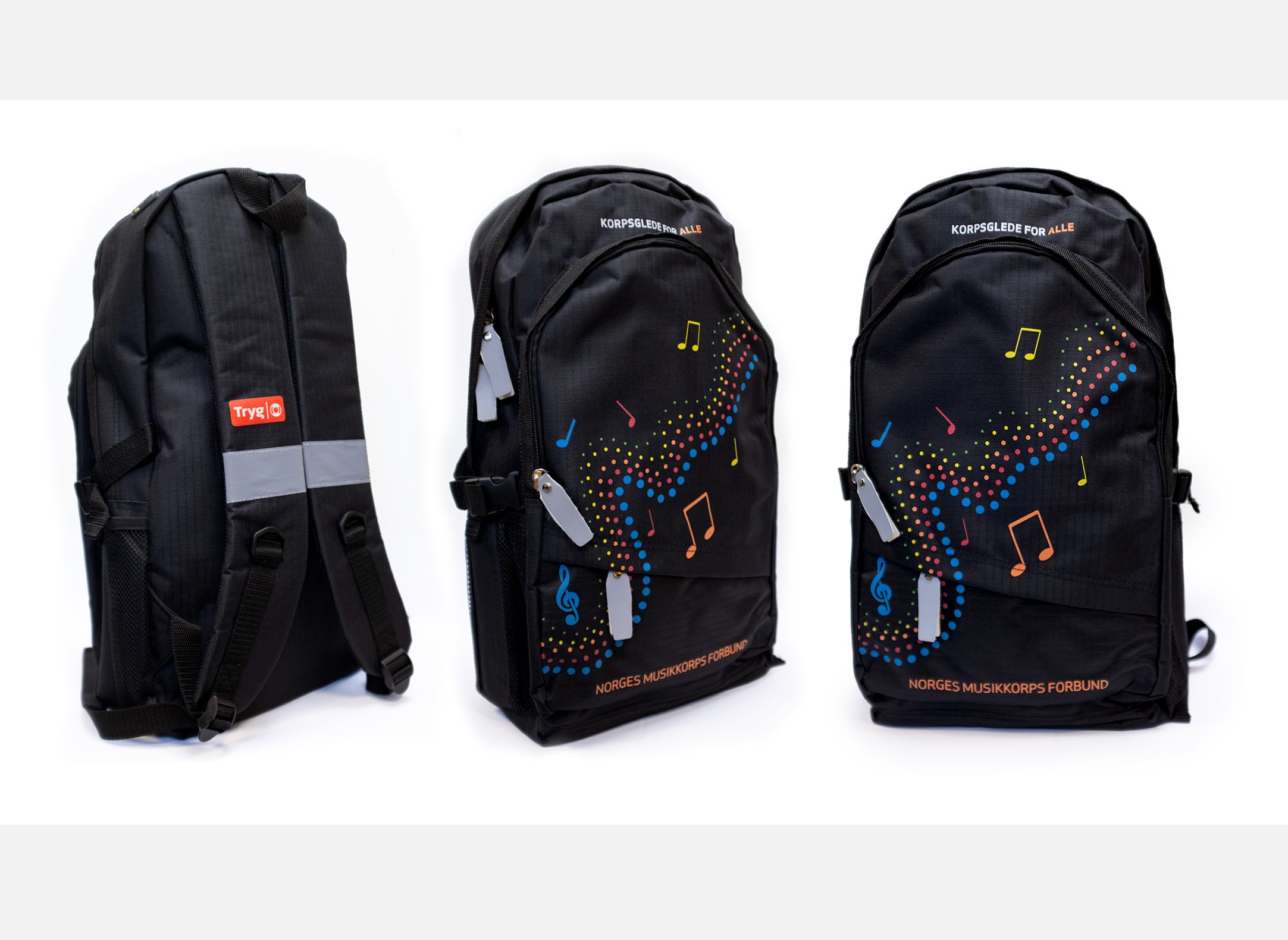 Både aspirantsekken og drillposen er en del av et samarbeid mellom Norges Musikkorps Forbund og Tryg Forsikring, både sekk og pose er delvis finansiert av Tryg. Du kan lese mer om samarbeidet mellom Norges Musikkorps Forbund og Tryg Forsikring her.